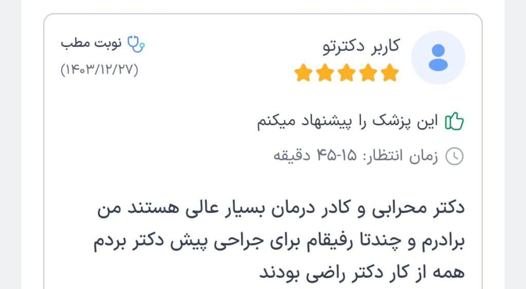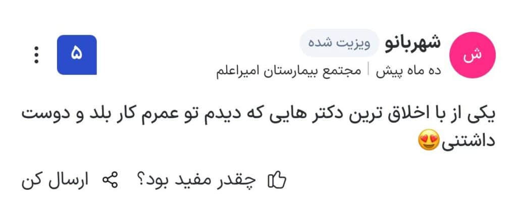 | 2.دکتر مهرداد جعفری | امیرمازندرانی | 29 سال | 4.5 |