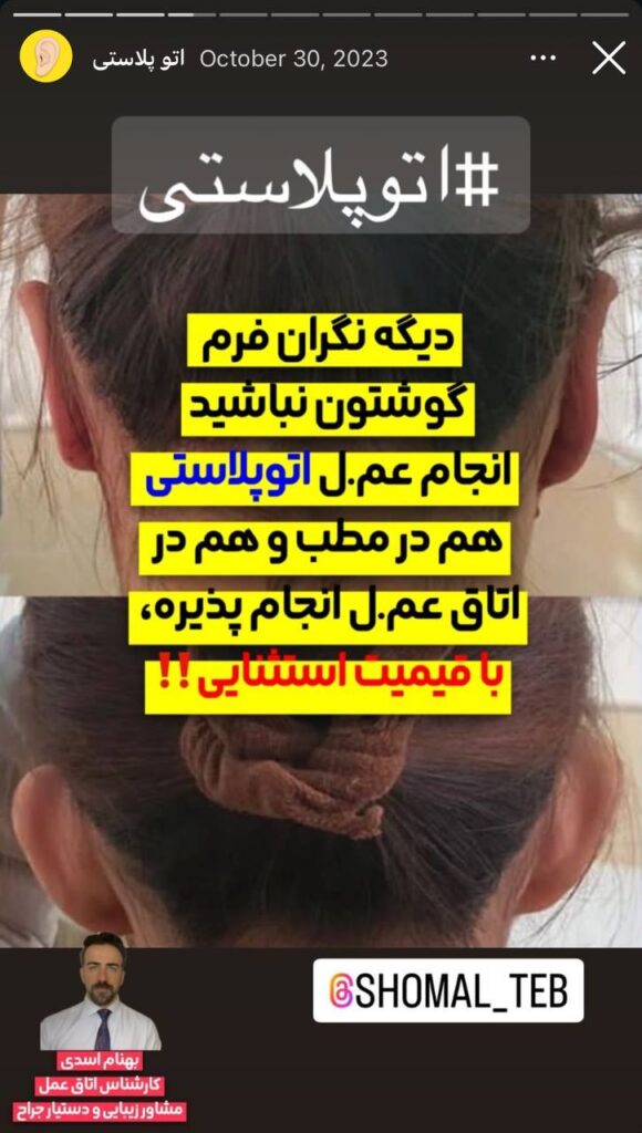 در حال حاضر نمونه کار اتوپلاستی از دکتر فهیمی منتشر نشده استفقط دو روز در هفته مطب باز است