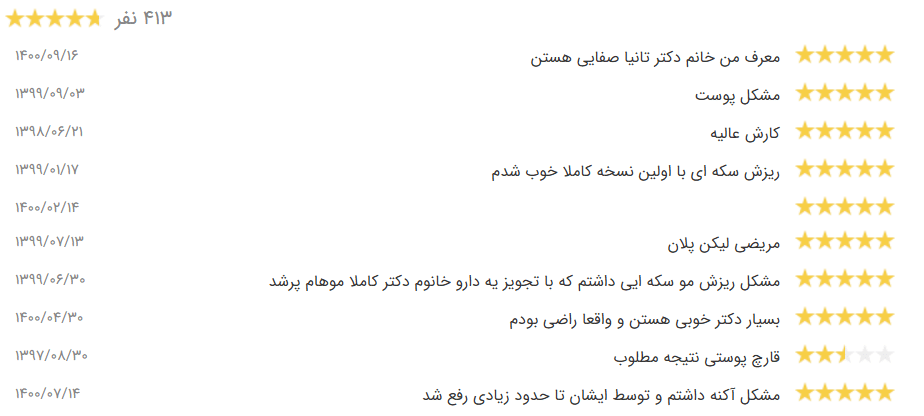 | دکتر | منطقه | تجربه کاری | امتیاز (از 5) |
