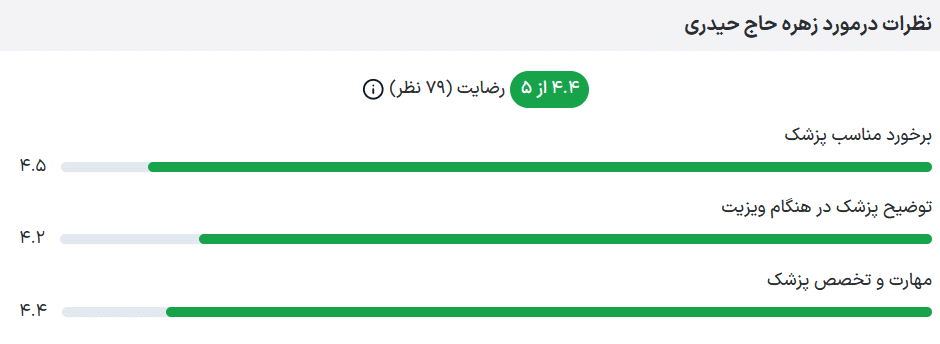 | دکتر زهره حاج حیدری (کلینیک زیبایی صدف) | بلوار خزر | بیش از 30 سال | 4.8 |