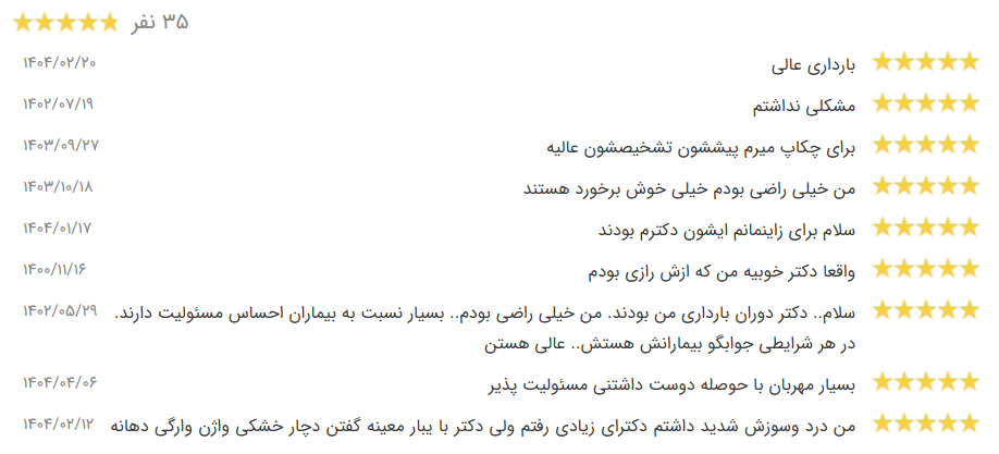 | دکتر هدی حق نظر | قارن | 32 سال | 3.6 |