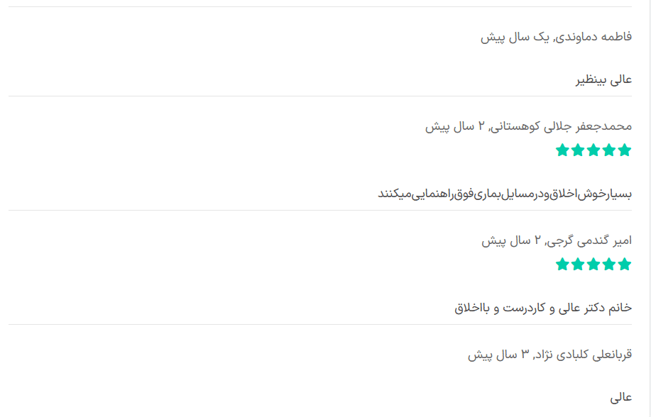 | دکتر | منطقه | تجربه کاری | امتیاز ( از 5 ) |