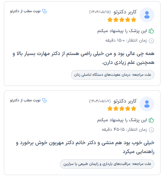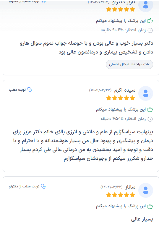 | 3. دکتر فرح ابطحی | سه راه کشاورزی | 32 سال | 4.5 |