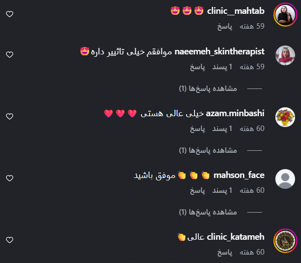 - اخلاق حرفه ای و صبوری پزشک و پرسنل کلینیک.