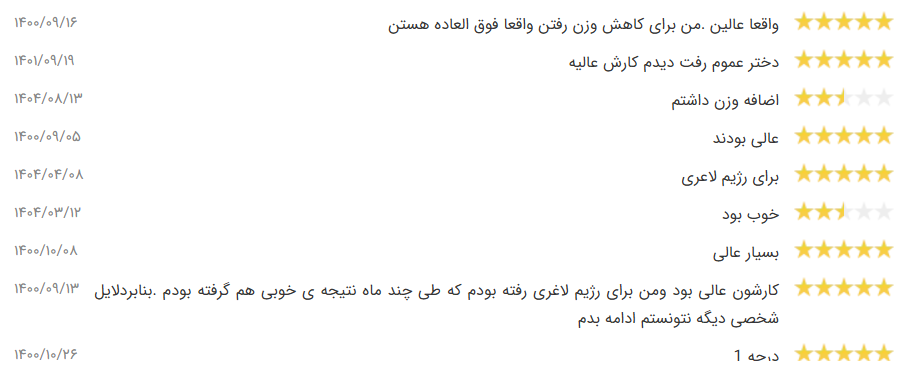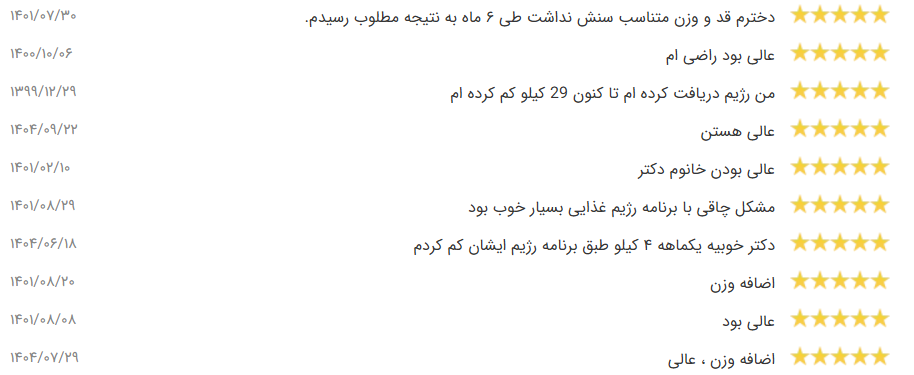 جلب رضایت کاربران از بهترین متخصص تغذیه ساری تحت تأثیر عوامل متعددی انجام می گیرد. در ادامه مطلب، عواملی که بر رضایت مراجعین از روند کاهش وزن و بهبود تغذیه تأثیرگذار هستند را بررسی می کنیم. تمامی موارد زیر در نظرسنجی انتخاب بهترین مشاور تغذیه در ساری موثر بوده‌اند.