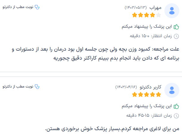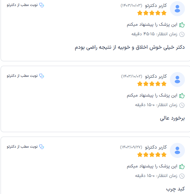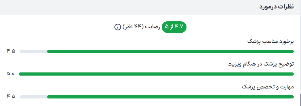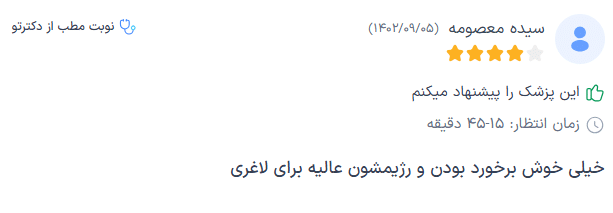 • برخورد پزشک: داشتن صبر و حوصله بالا در شنیدن دغدغه های مراجع.