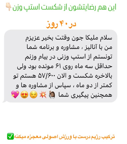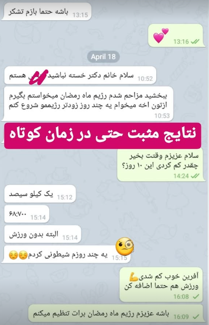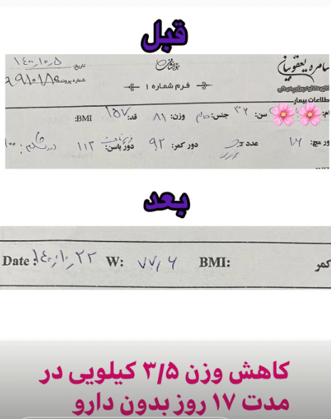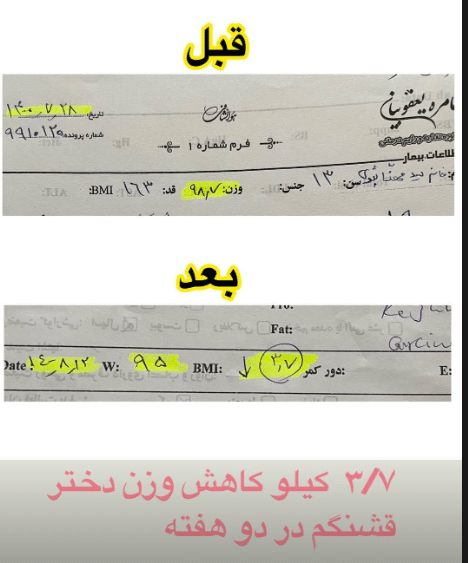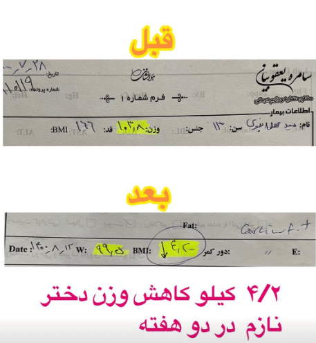• توجه به سلامت عمومی: بهبود آزمایشات خون (قند، چربی و کبد چرب) در کنار کاهش وزن.