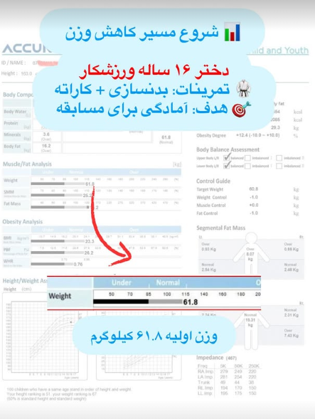 • استفاده از دستگاه های پیشرفته آنالیز ترکیبات بدنی (InBody) برای سنجش دقیق چربی و عضله.